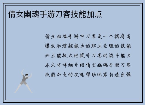 倩女幽魂手游中,刀客是一个拥有高爆发和续航能力的职业。合理的技能加点能极大地提升刀客的战斗能力。本文将详细介绍倩女幽魂手游刀客技能加点的攻略,帮助玩家打造出强力的刀客。
